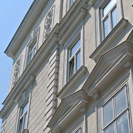 Die Liegenschaft ist ein wunderschönes Zinshaus des Vormärz mit gegliederter, frühhistoristischer Fassade. Es gibt einen großzügigen Innenhof mit Baumbestand und Zugang zu allen Stiegen und Aufzügen. Im Innenhof befindet sich ein Gartenhaus mit Sichtziegel, Außentreppe und Balkon.
